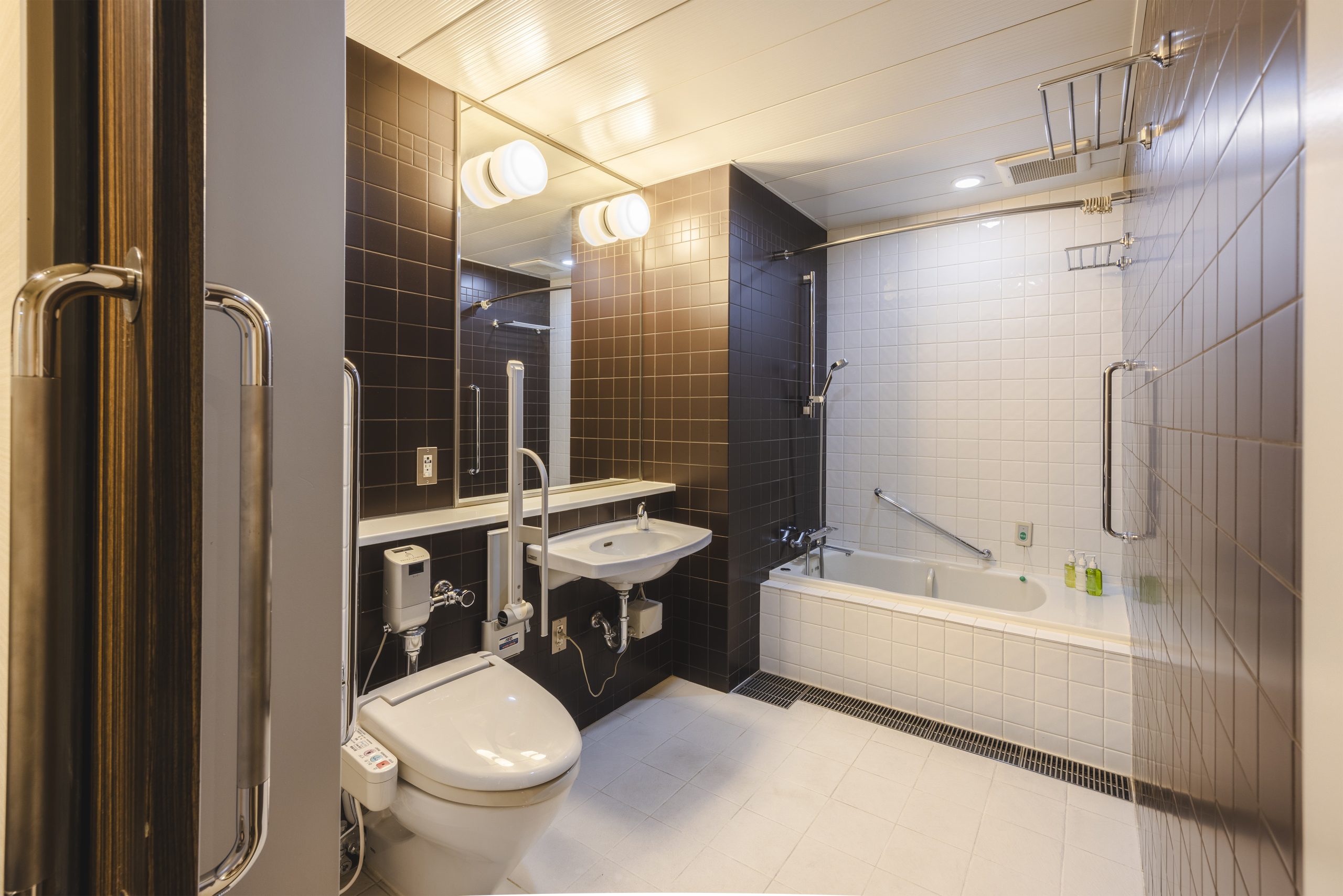 車椅子のまま過ごせる、段差のないゆとりあるスペースをご用意しました。 どなたでも快適にご利用いただけるユニバーサルトイレを設置。 客室は3階のエレベーターホールの近くにございます。
