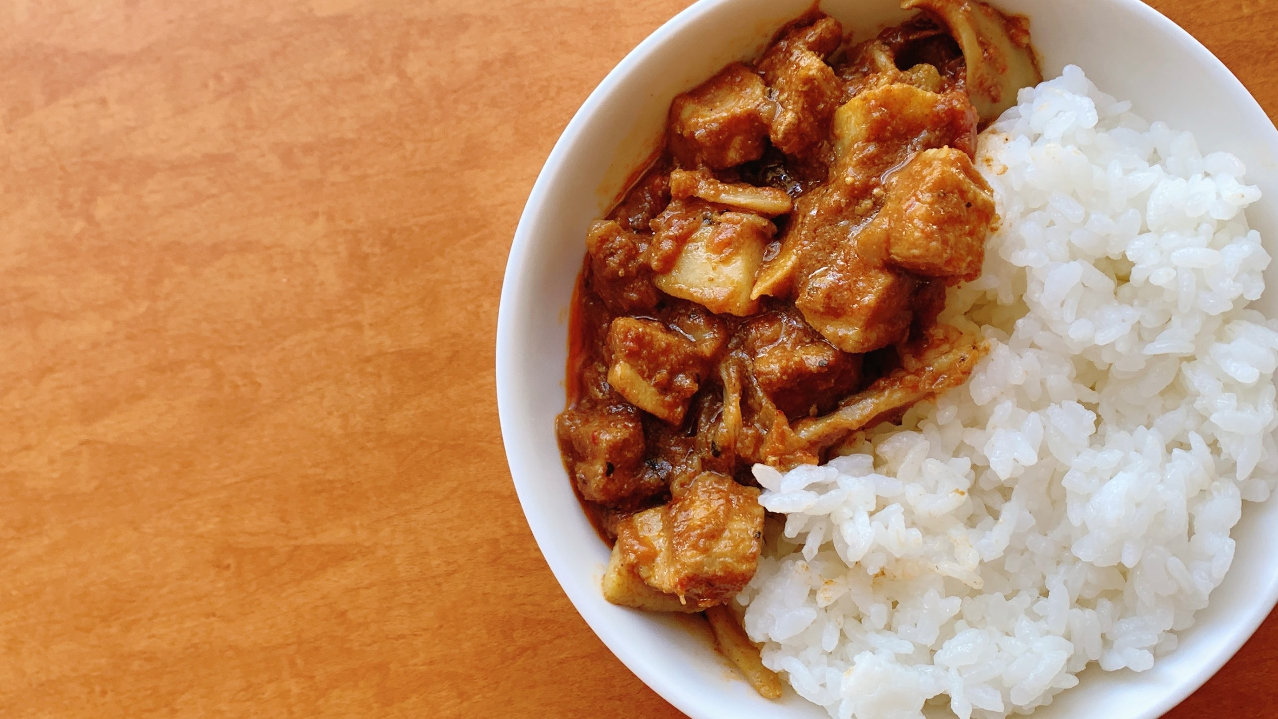 ゴロゴロとカットした豚トロと舞茸をたっぷり入れ、料理長オリジナルブレンドのスパイスを使った、本格的なカレーです。